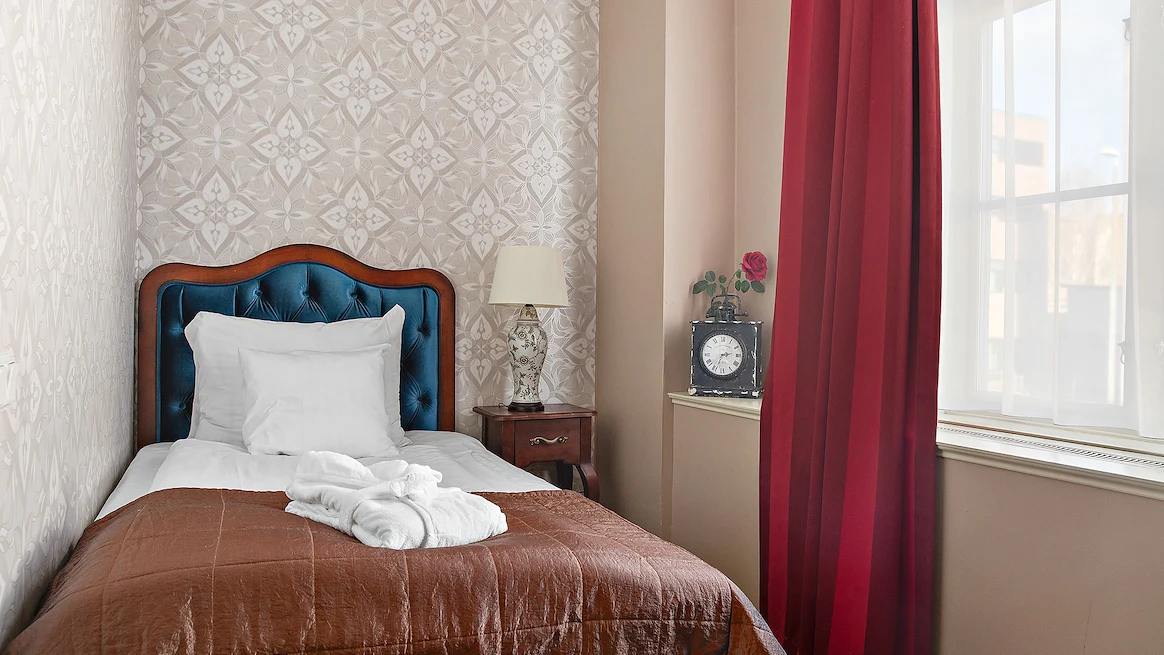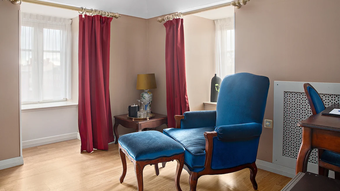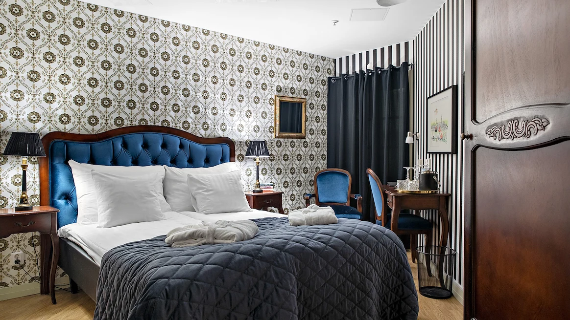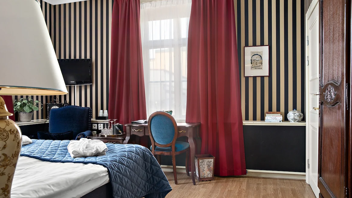 Välkomna1 trappa ner.Samma fina standard på rummen men fönstren vätter emot en konferenslokal och ej mot frisk luft.För priser kontakta bokningen på 063-511600 alt. bokning@gamlateatern.se